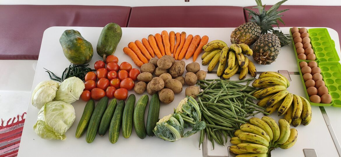 Bref, nous avons recu notre commande aujourd’hui, et sommes complet en fruits et légumes pour les 15 prochains jours, en complément de ce que nous avons déjà à bord.